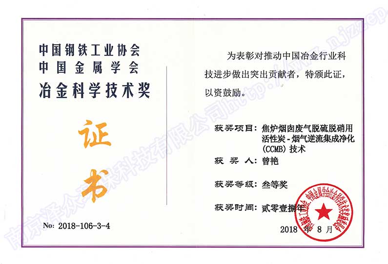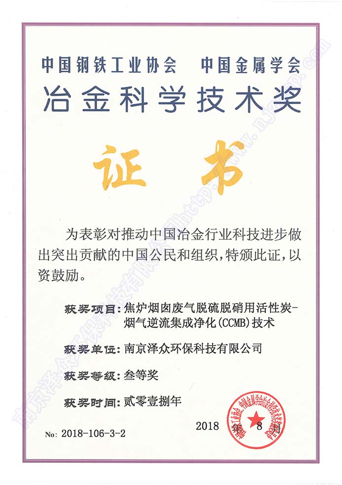 南京澤眾環(huán)保科技有限公司坐落于南京市雨花臺(tái)區(qū),注冊(cè)資本6000萬(wàn)元,2017年被認(rèn)定為高新技術(shù)企業(yè),2018年被認(rèn)定為瞪羚企業(yè),入選中國(guó)鋼鐵技術(shù)與服務(wù)供應(yīng)商品牌企業(yè),被評(píng)為鋼鐵產(chǎn)業(yè)鏈綠色標(biāo)桿企業(yè),與浙江工業(yè)大學(xué)合作成立聯(lián)合研發(fā)中心,入股河南安鋼澤眾冶金設(shè)計(jì)有限責(zé)任公司,牽頭起草《燒結(jié)煙氣活性焦干法脫硫、脫硝技術(shù)規(guī)范》和《焦?fàn)t煙氣聯(lián)合脫硫脫硝技術(shù)規(guī)范》。 公司專(zhuān)長(zhǎng)于活性炭煙氣凈化技術(shù),創(chuàng)新能力突出,成功研發(fā)具有獨(dú)立自主知識(shí)產(chǎn)權(quán)的活性炭-煙氣逆流集成凈化CCMB(ActivatedCarbon Countercurrent Moving Bed)技術(shù),形成獨(dú)立自主知識(shí)產(chǎn)權(quán)體系,由中國(guó)金屬學(xué)會(huì)評(píng)價(jià)鑒定達(dá)到國(guó)際領(lǐng)先水平,獲得冶金科技三等獎(jiǎng),被評(píng)為“鋼鐵產(chǎn)業(yè)鏈綠色低碳好技術(shù)”,入選中國(guó)鋼鐵工業(yè)協(xié)會(huì)先進(jìn)節(jié)能環(huán)保技術(shù),入選生態(tài)環(huán)境部國(guó)家先進(jìn)污染防治技術(shù)目錄推廣技術(shù)。